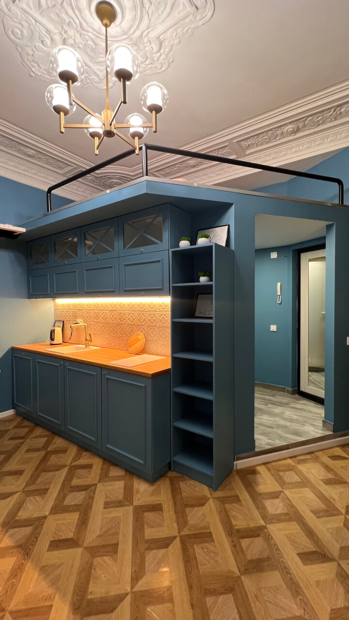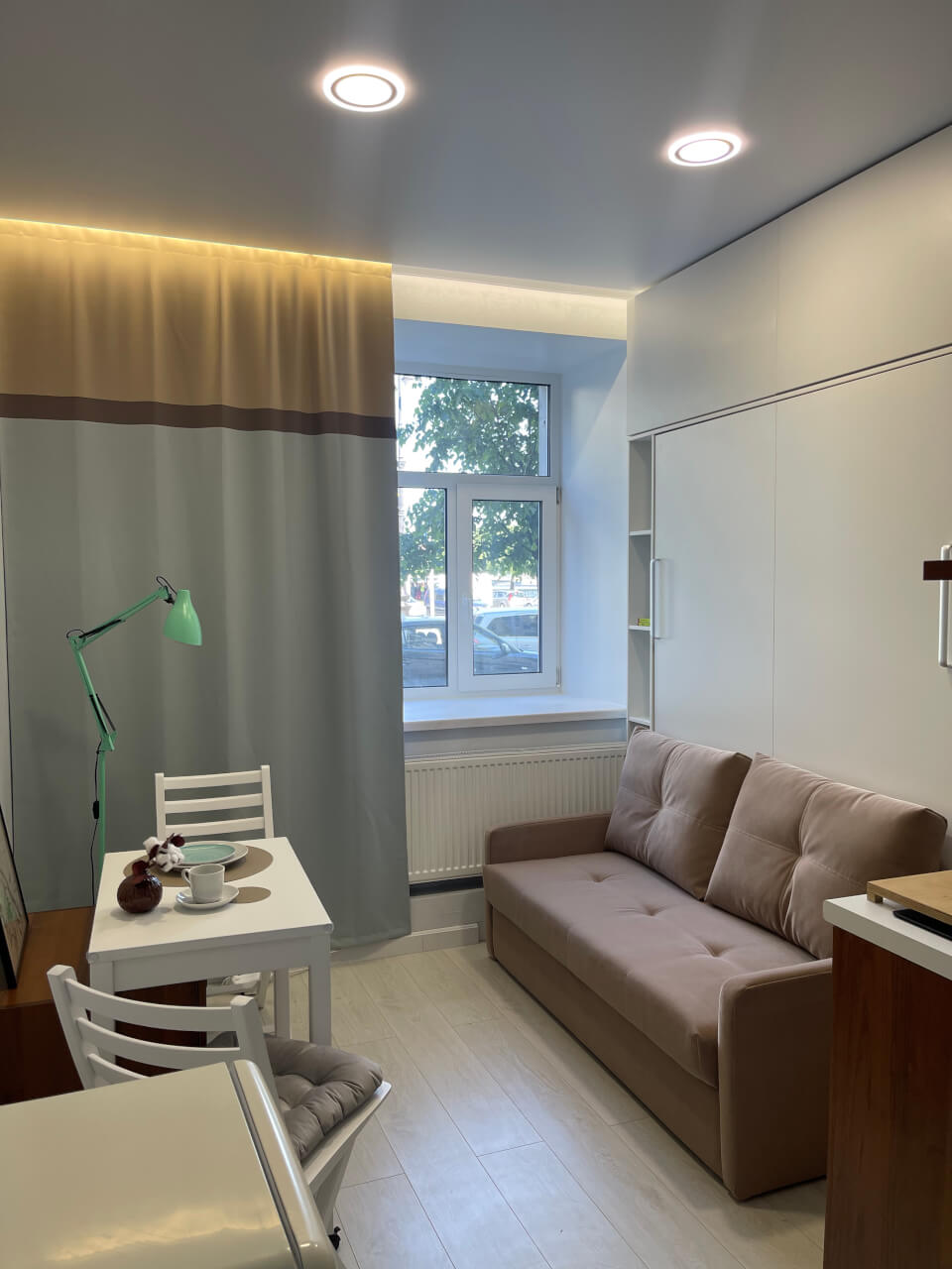 - Готовая студия с ремонтом и техникой — заезжайте и живите.